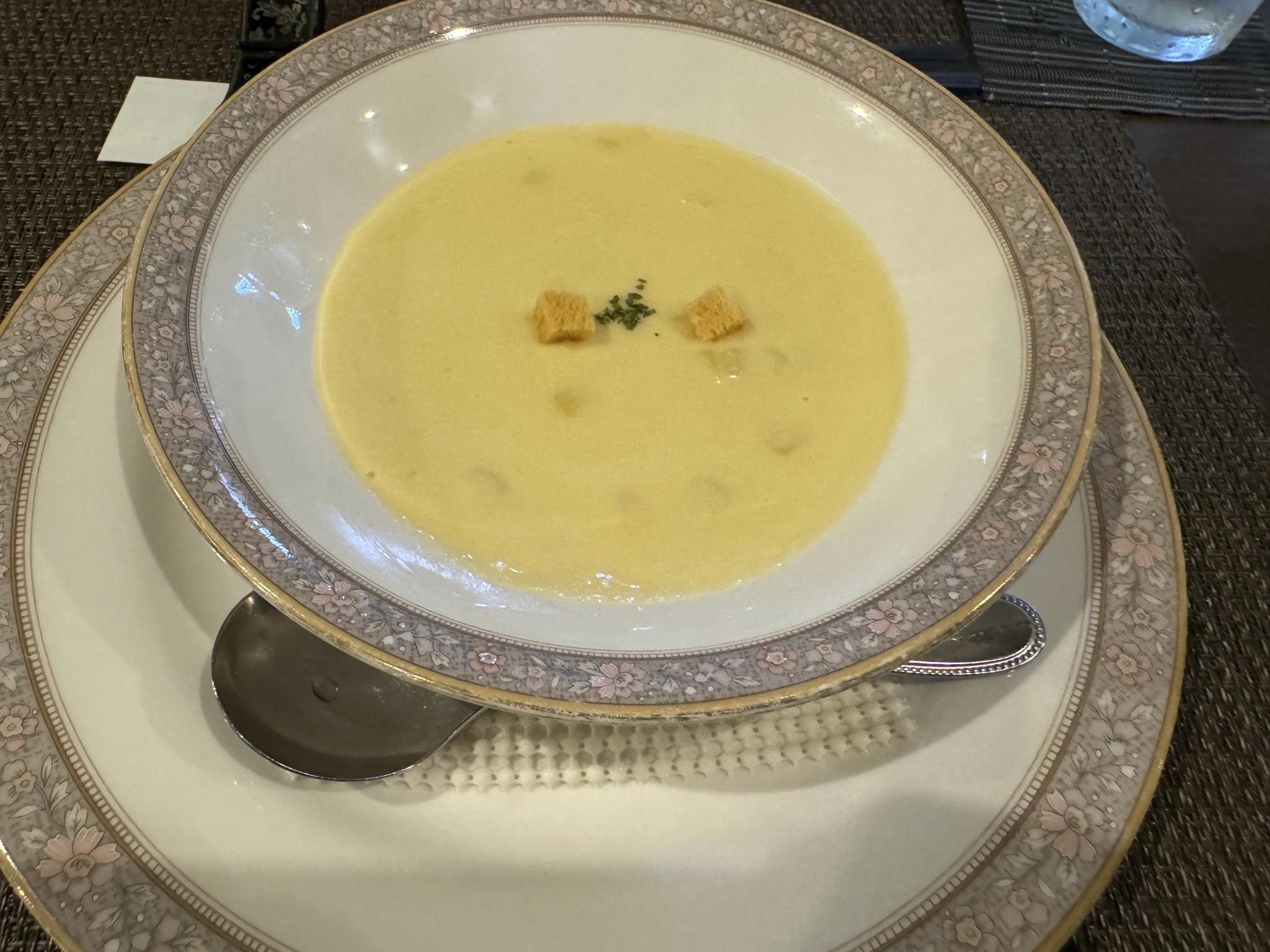 なめらか、濃厚なポタージュスープはまろやかでコクがあり、季節によって野菜が変わるので、その時々の風味を味わえます。宮崎の古民家レストラン西洋厨房 萌黄(もえぎ)で宮崎牛を堪能!