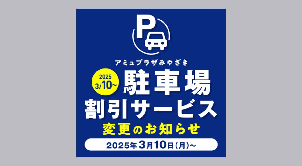 2025年3月10日よりアミュプラザ宮崎の駐車料金が改定されました。