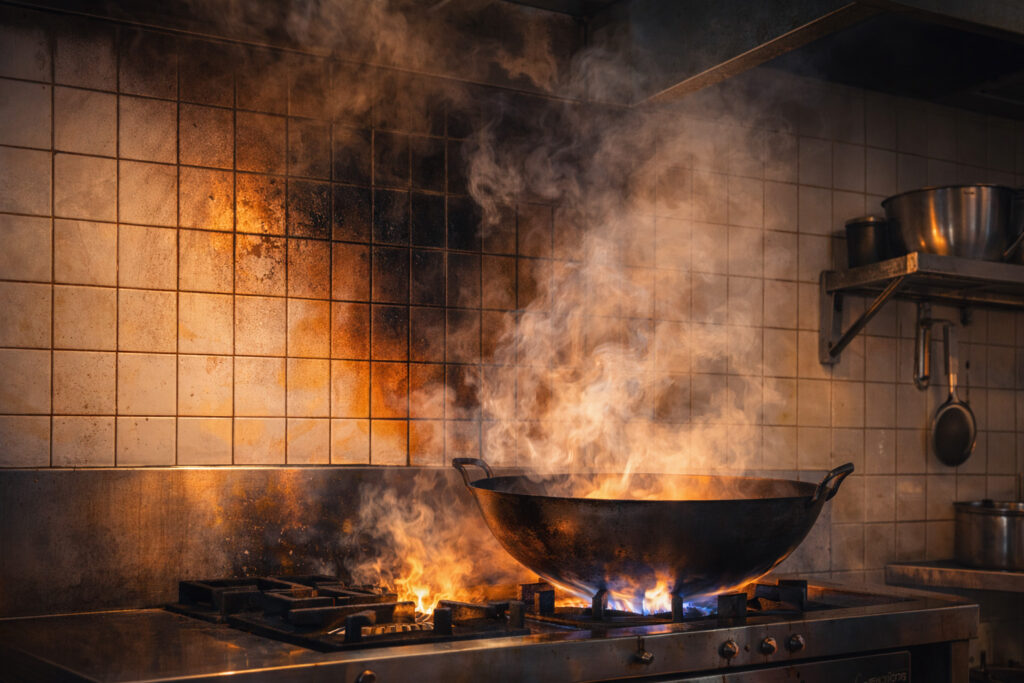 飲食店、とくに厨房は、熱源と可燃物が近くなりやすい環境です。火災の進み方が見えにくくなる要因として、次のようなポイントがあります。